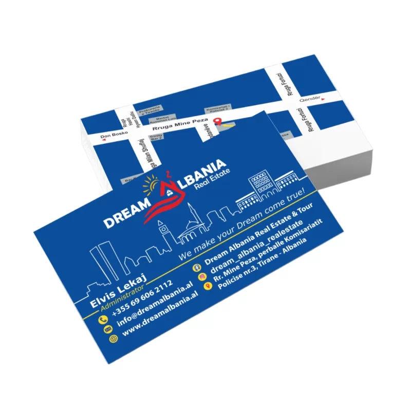 Kartëvizitë e thjeshta printim me ngjyra të plota CMYK me celefonim mat ose me shkëlqim.